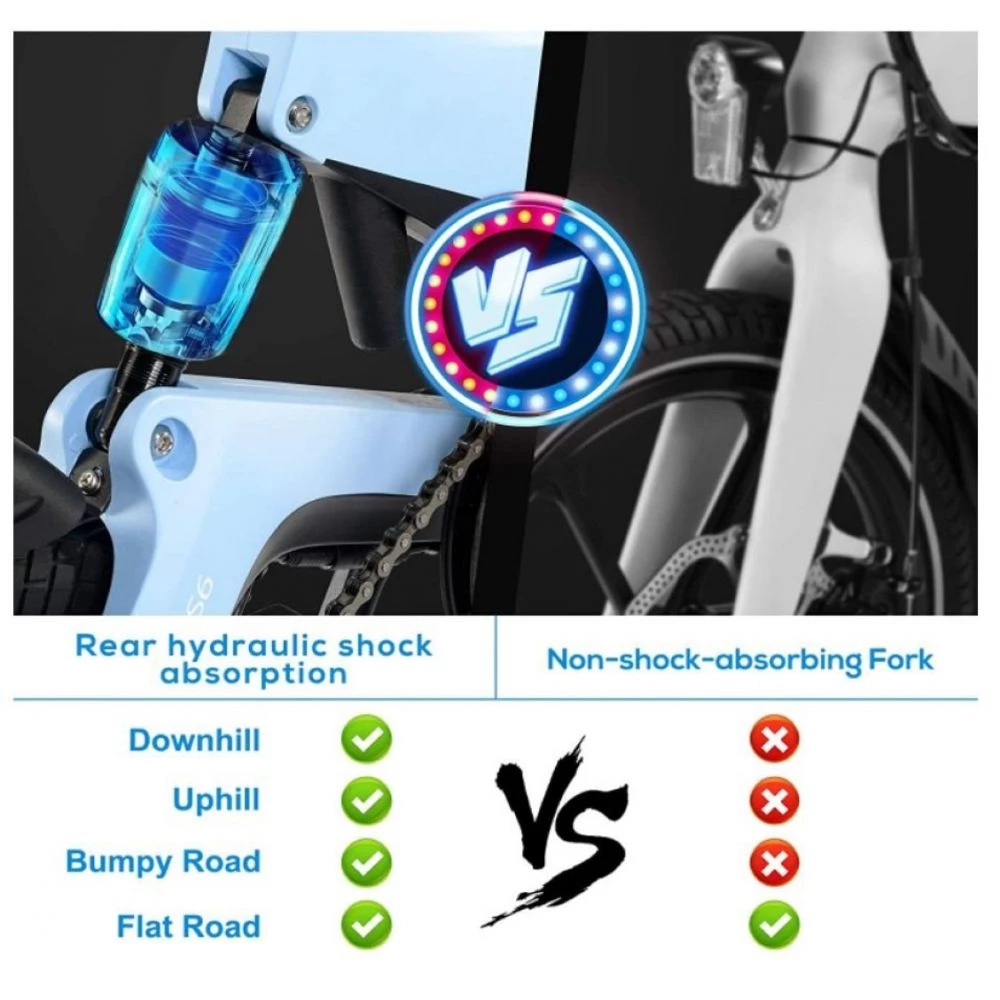 Der sidder en støddæmper bagpå, så cykelturen bare bliver meget mere behagelig.