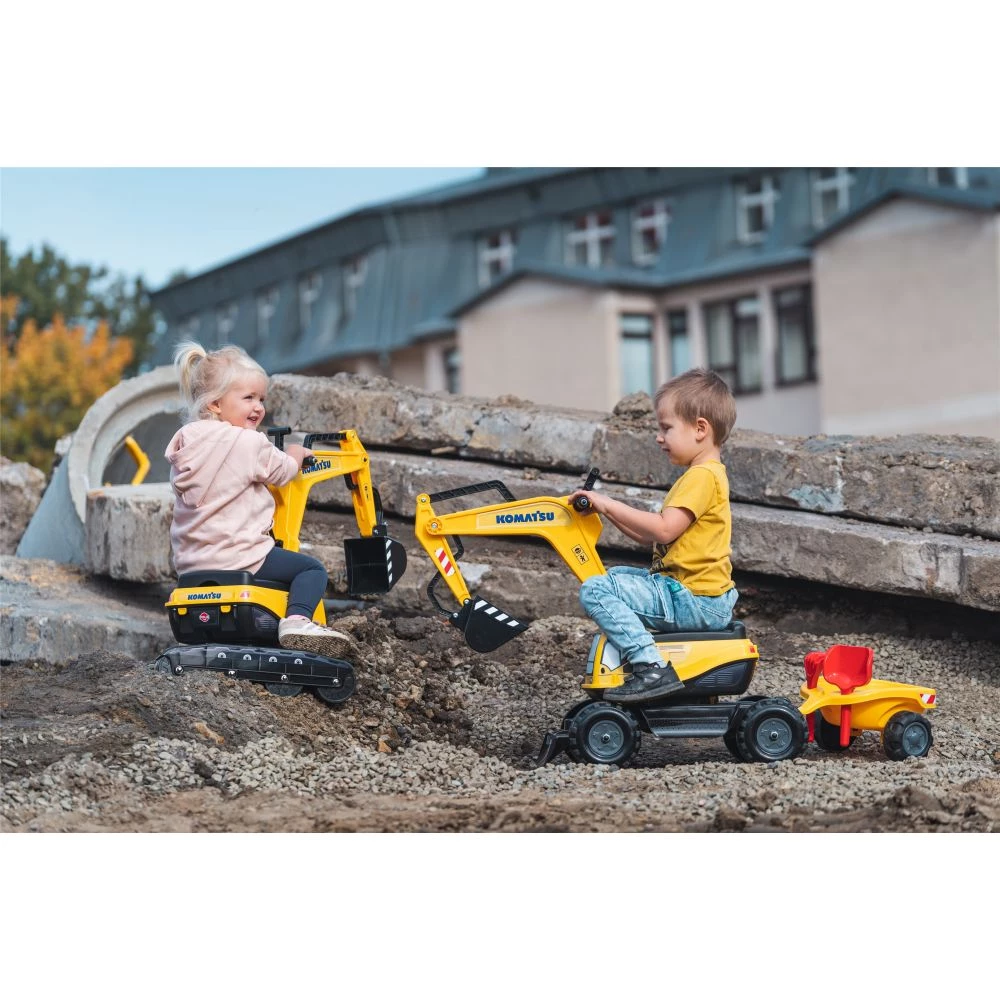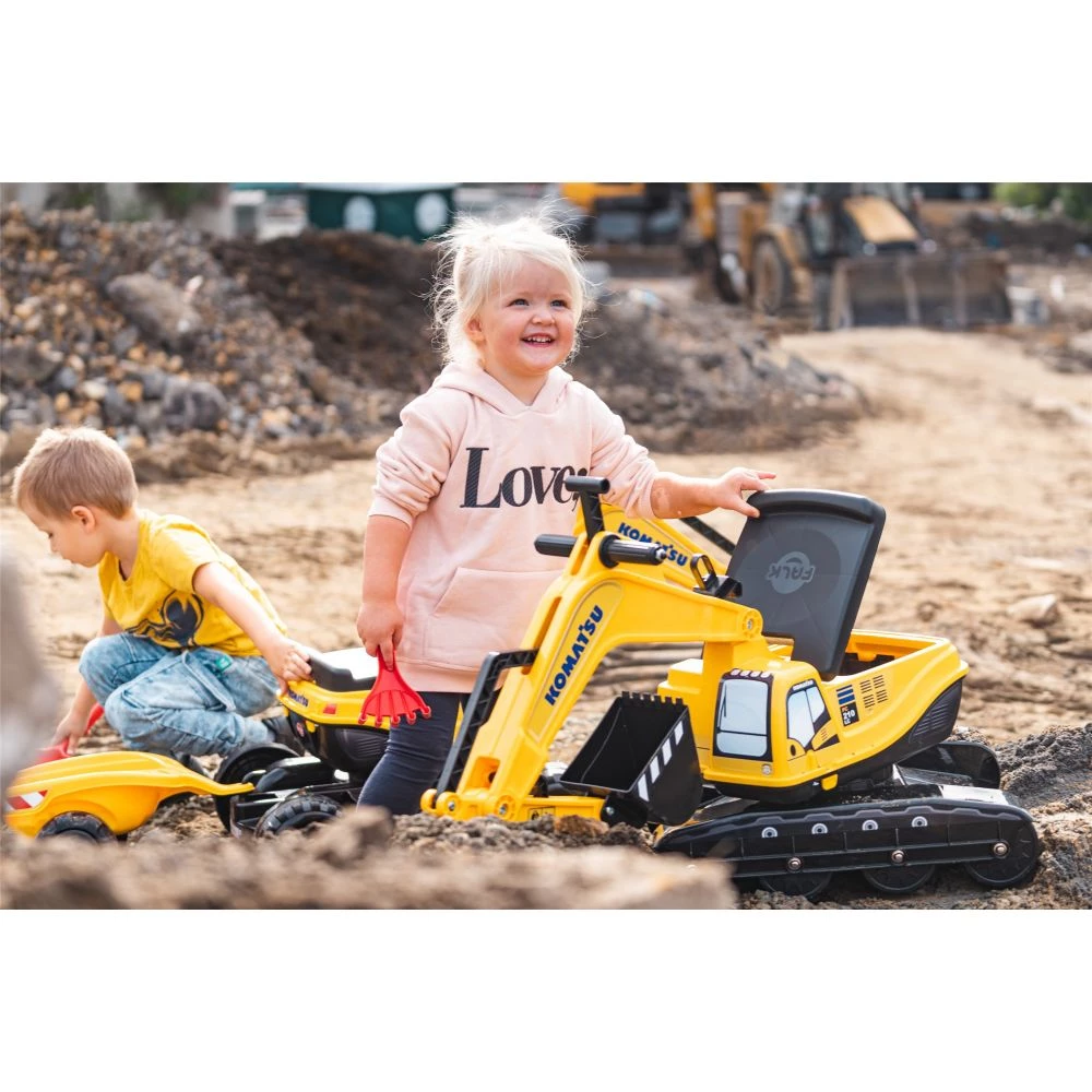 Hjelm på! Vi ruller ærmerne op! Når det skal være en ambitiøs byggeplads for små bygherrer, så er det eneste rigtige en Komatsu gravemaskine. Den har en 360° roterende kabine med arbejdssæde og er udstyret med en fuldt leddelt, mekanisk skovl. Denne miniature konstruktionsmaskine er specielt designet til børn mellem 3 og 7 år. Den er 100% fremstillet i Frankrig og fremstillet til at garantere timevis af leg: Begynd at grave ud til poolen eller grav bedstemors tulipaner op. Mulighederne for kreativ leg er uendelig!