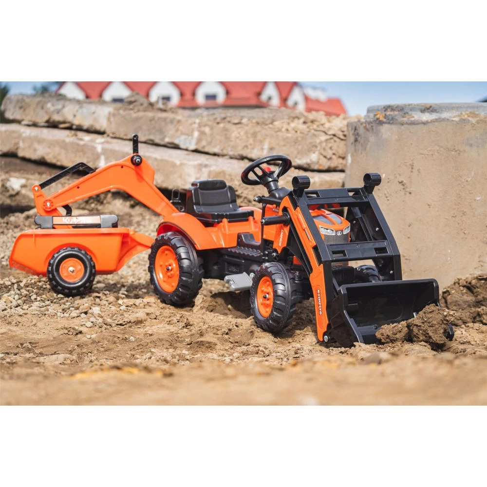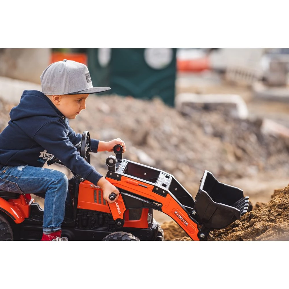 Denne Kubota rendegraver er specielt designet til små eventyrere fra 2 til 5 år. Det er en fin pedalreplika af Claas Arion 410-modellen. Med den leddrevne skovl og gravemaskine kan barnet grave og dyrke. Man kan nemt fastgøre traileren med sidepaneler, som gør det muligt at transportere sand, blade, jord og sten fra den ene ende af haven til den anden. Som både gartner og landmand udvikles dit barns autonomi og fantasi. Denne praktiske rendegraver med rat og horn er 100% lavet i Frankrig. Den garanterer timevis af underholdning udendørs!