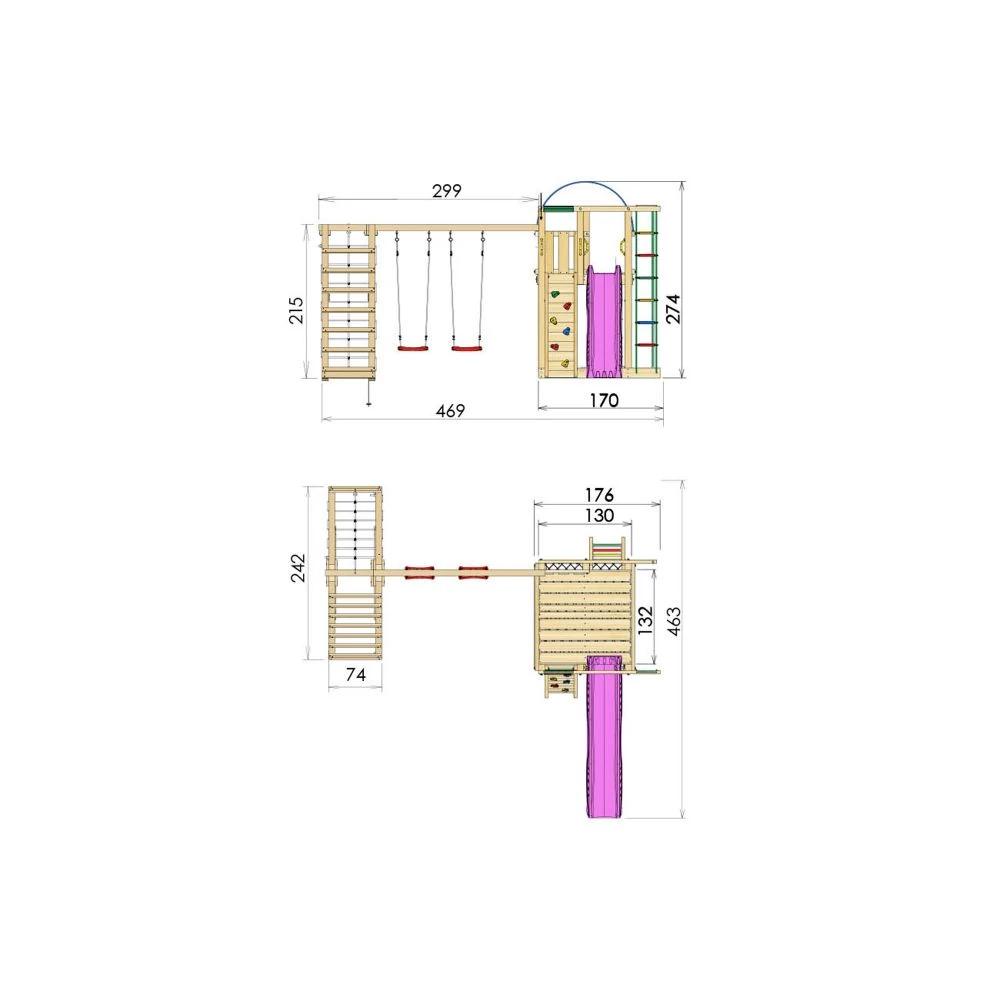 Areal ekskl. sikkerhedsareal klatremodul: B:287 x D:238 x H: 215 cm