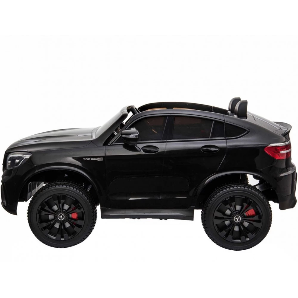 Ægte 4 hjuls træk – En af de mest ekslusive el-biler fra Mercedes er uden tvivl GLC 63. Selvfølgelig lavet på licens af Mercedes fabrikken, mere perfekt bliver det ikke.2 personers Mercedes GLC 63C monteret med 4 x 12V motorer og et kraftig 12V/10Ah batteri, en rigtig stor sejtrækker der kommer igennem alt. Den er desuden udstyret med rigtige gummihjul og lædersæde, som giver en god kørekomfort for barnet.Der medfølger fjernbetjening, så en voksen har mulighed for at have kontrollen, indtil barnet selv får lært at styre bilen.Specifikationer: * 4 x 12V motorer (træk på alle 4 hjul) * 12V/10Ah batterie * Top hastighed 3-7 km i timen. * Gummihjul * Lædersæde * Der medfølger 2.4GHz fjernbetjening * 2 fremadgående og bakgear * Støddæmper på alle 4 hjul * Døre kan åbnes * Plads til 2 personer * LCD voltmeter indbygget, viser hvor meget strøm der hele tiden er på bilen * Funktion: Lys, lyd og musik * Volumenknap * Med mulighed for tilslutning af MP3, SD og USB afspiller * Sikkerhedssele * Max personvægt: 50kg * Størrelse samlet: 137,5 x 85,8 x 63,8 cm * Emballage størrelse: 140 x 79 x 41,5 cm * Netto Vægt: 27,5 kg * Brutto vægt: 33,5 kg * Ladetid: 8-10 timer * Komplet inkl. oplader * Advarsel, ikke egnet til børn under 3 år, på grund af små dele. * Køretøjet må ikke bruges på offentlig vej.