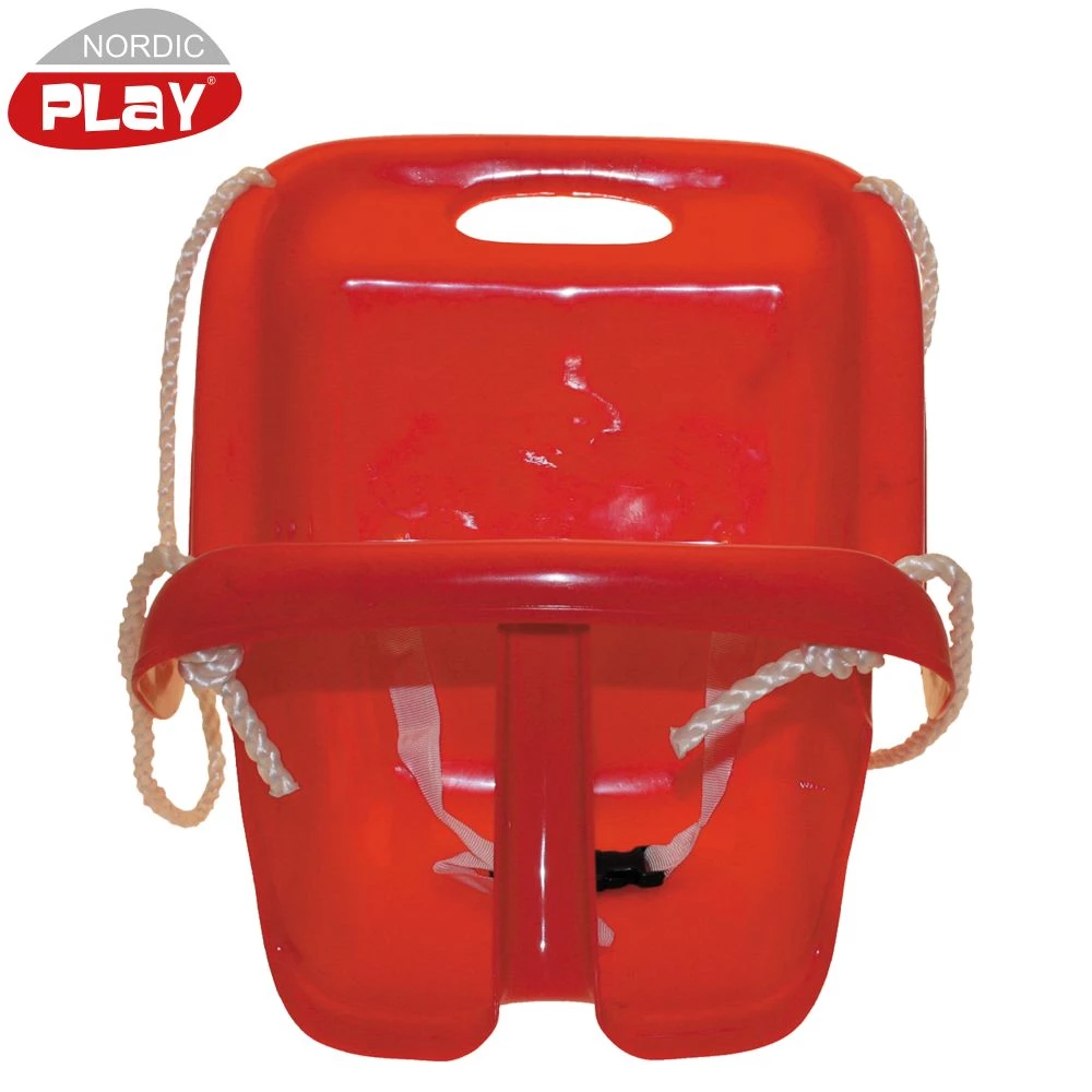Babygynge fremstillet i plast og er inklusiv justerbart reb ophængt i galvaniseret runde ringe, eksklusiv gynge kroge.