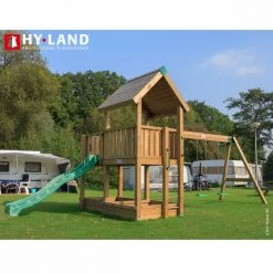 Plus A/S Plus Gyngestativ Med Ståloverligger Og Grønne Gyngesæder – 264×9×210 Cm – 185201-15