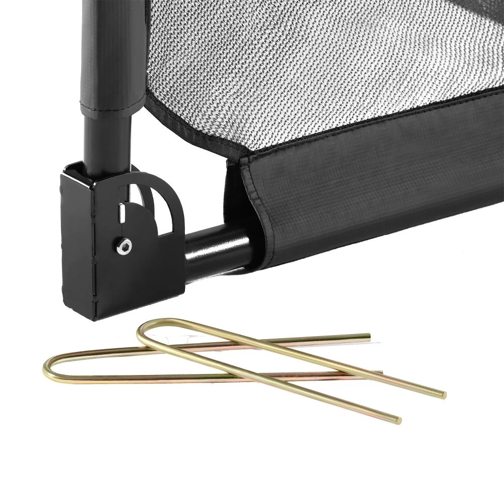 De to fodboldmål har en galvaniseret stålramme med matsort pulverlakering og et vejrbestandigt, fintmasket net