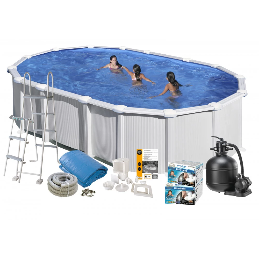 Poolpakke komplet med oval fritstående familiepool og stor tilbehørspakke 7,30 x 3,75 x 1,32 m